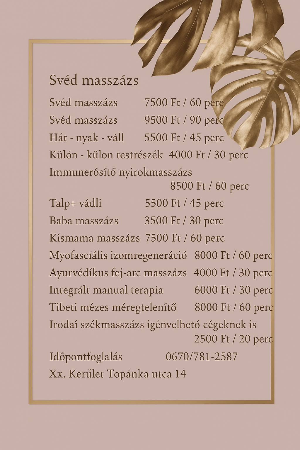 Speciális masszázsok (pl. thai, svédmasszázs, reflexológia)